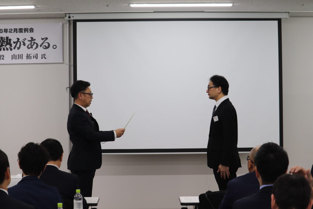 また、例会中に1月入会の中谷崚さん、上原武憲さんの入会認証状が授与されました。